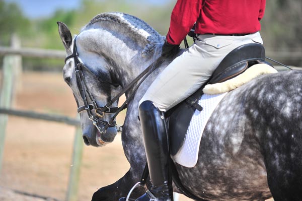 很多人在認(rèn)識(shí)上存在一個(gè)誤區(qū),那就是盛裝舞步騎手的腳鐙皮帶必須很長(zhǎng),然而事實(shí)上你應(yīng)該讓腳鐙皮帶的長(zhǎng)度調(diào)整到能讓你坐在馬鞍中間、并保持你的身體平衡的程度。