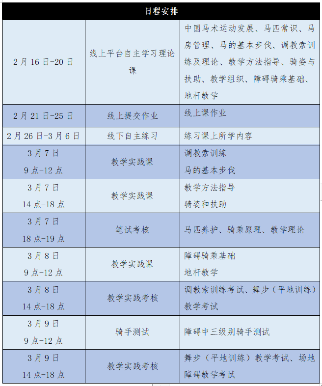 (三)線下輔導(dǎo)和實踐考核:2022年3月7日-9日,在無錫陽山夢想馬術(shù)學(xué)府進行線下集中輔導(dǎo)與實踐考核。