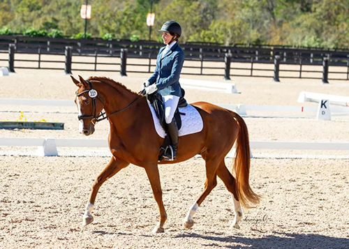 從上面的圖片可以看出,馬和騎手非常專注。馬匹看起來非常柔軟,對騎手的輔助也非常服從。從馬四肢可以看出,馬匹的步伐充滿彈性;再去看到馬的臀部,有旋轉的動勢,說明馬的背部靈活柔軟。也可以看出這是一匹年輕馬,因為它的肌肉還沒有像成熟舞步馬那樣圓、發(fā)達,但是作為一匹年輕馬,它的運動方式,頭和頸部的位置非常好。
