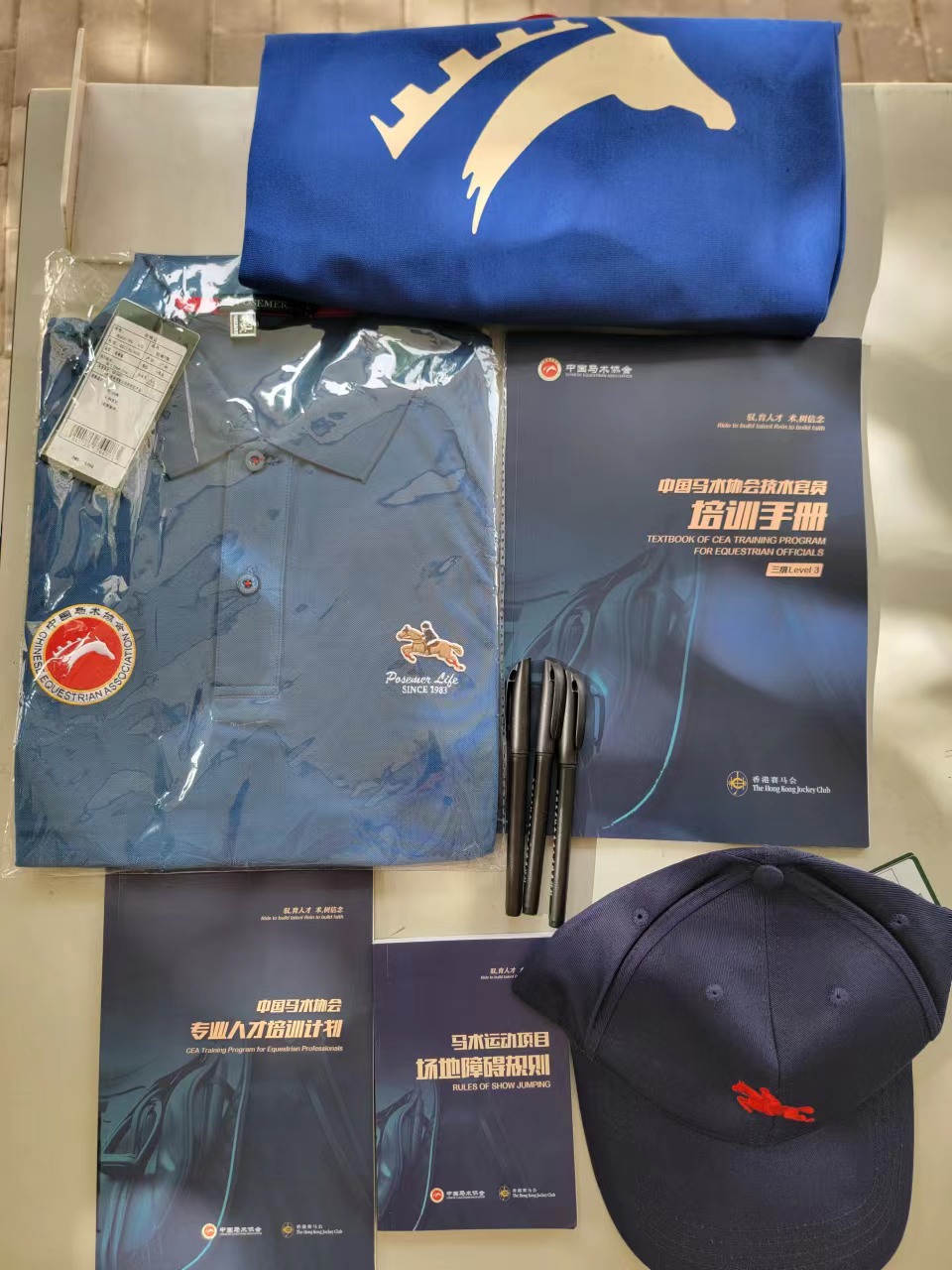 每位學(xué)員都收到了中馬協(xié)專業(yè)人才培養(yǎng)計(jì)劃的培訓(xùn)大禮包:posemer運(yùn)動上衣,posemer帽子,中國馬術(shù)協(xié)會技術(shù)官員培訓(xùn)手冊,馬術(shù)運(yùn)動項(xiàng)目場地障礙規(guī)則,中馬協(xié)專業(yè)人才培養(yǎng)計(jì)劃筆記本、培訓(xùn)用筆、帆布包。