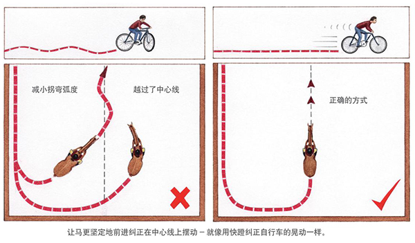 要準(zhǔn)確地轉(zhuǎn)過(guò)去,不能越過(guò)中心線是非常重要的。馬必須沿中心線直行,不能離開(kāi)正道或曲行。