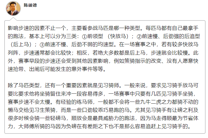 步速--決定賽果是否正路!