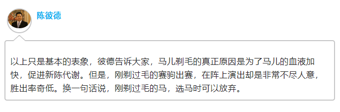 問(wèn):剃了毛的賽駒又表現(xiàn)如何呢?