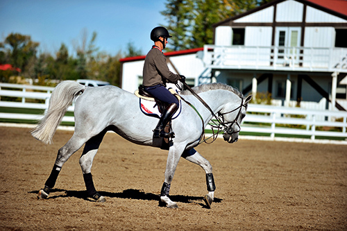 在各種停止和半減卻,以及各種變換中,增加兩側(cè)坐骨的重量可提高馬的后肢動力。結(jié)合驅(qū)動性的腿部輔助,這種重量輔助會刺激馬的雙后肢向前朝著重心的方向更深地踏出,蹬踏地面更加有力。