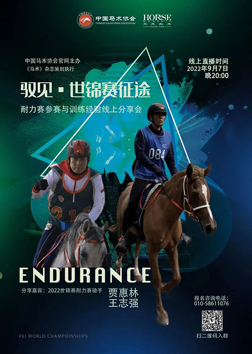 本次馭見·世錦賽征途耐力賽參賽與訓(xùn)練經(jīng)驗(yàn)線上分享會,旨在通過傳遞獲得2022世錦賽耐力賽比賽資格的騎手賈惠林、王志強(qiáng)兩位專業(yè)騎手對于專業(yè)耐力賽的理解,為所有準(zhǔn)備進(jìn)入,或者已經(jīng)踏入馬術(shù)耐力項(xiàng)目的騎手們指明未來發(fā)展方向,激發(fā)耐力項(xiàng)目愛好者的學(xué)習(xí)熱情,弘揚(yáng)馬術(shù)耐力項(xiàng)目的體育精神,讓所有喜歡耐力項(xiàng)目的騎手有所收獲。