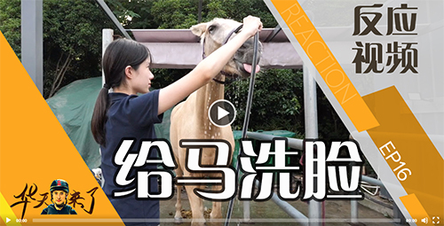 這一點(diǎn)在第六集《梳理頭部》的視頻里華天也提到過,因?yàn)轳R對(duì)自己的頭部特別敏感, 被觸碰到的時(shí)候很容易緊張,這時(shí)如果發(fā)現(xiàn)被拴住了,就會(huì)愈發(fā)的受驚想要掙脫,這是非常危險(xiǎn)的情況。錄制這一集的時(shí)候Angelina肯定還沒看過第六集的播出,所以在這里犯了一個(gè)很常見的錯(cuò)誤。雖然乖巧的小馬Angela帶著一臉抗拒勉強(qiáng)堅(jiān)持著洗完臉, 但今天的挑戰(zhàn)沒有完全成功。