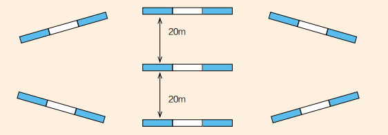 “我的場(chǎng)地里一直擺著由3個(gè)相距20米的迷你障礙組成的、可以兩個(gè)方向跳的關(guān)系障礙。我先要求兩次5步。然后我要求先4步再6-7步,或先6步再4步。這是一個(gè)簡(jiǎn)單的練習(xí),反復(fù)在直線上跳一樣的障礙。我確保正直,控制和后肢踏進(jìn),后肢踏進(jìn)的程度因步數(shù)而異。馬要是做好這個(gè)練習(xí)就意味著他已具備了障礙的基本能力,這是一個(gè)練馬的機(jī)動(dòng)性的練習(xí)。為了增加難度,可以擺一個(gè)折線的關(guān)系障礙,讓馬左右里懷并變換步數(shù)地練??梢杂米罡?20或130的障礙做同樣的練習(xí)。偶爾跳躍相對(duì)高的障礙的意義在于它使得騎手的控制受到挑戰(zhàn)。這個(gè)練習(xí)在平地、地桿和迷你障礙上容易,但是障礙越高人越容易失去控制。這個(gè)練習(xí)適用于各種馬和各種水平的騎手,且訓(xùn)練得比較全面,因?yàn)樗志氈本€又練曲線。”