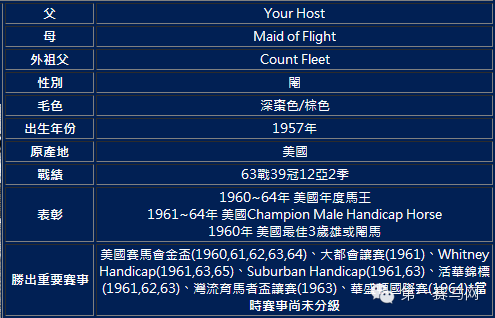 “凱爾索”(Kelso)之父Your Host曾為加州最佳3歲馬,但于一次賽事中嚴(yán)重骨折,馬主原打算“放棄”此馬,但馬迷為拯救Your Host而幫保險(xiǎn)公司向馬主賠償,最終它幸運(yùn)地死里逃生而轉(zhuǎn)往配種。Your Host之后以一筆可觀的金額售與一班美國東部的人士,其中Mrs.Richard C.duPont把其牝馬Maid of Flight與Your Host配種,產(chǎn)生出的雄馬以其親密女性友的名字--Kelso為馬駒命名。