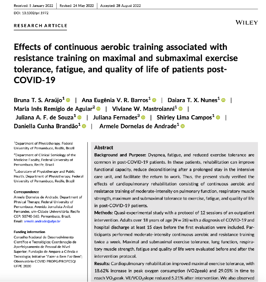 同時(shí),數(shù)個(gè)研究表明,感染新冠病毒后進(jìn)行進(jìn)行有氧訓(xùn)練和抗阻訓(xùn)練,可以改善運(yùn)動(dòng)能力、疲勞和生活質(zhì)量。