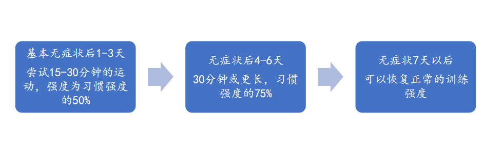 無癥狀后14天,進(jìn)入遞進(jìn)恢復(fù)訓(xùn)練階段!