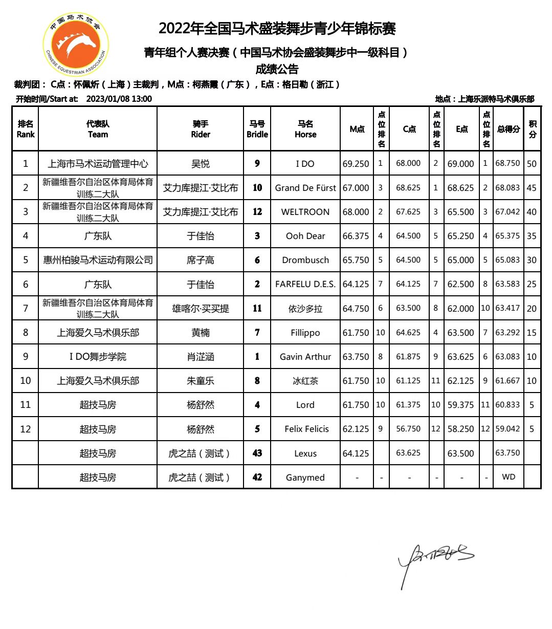 2022年全國馬術(shù)盛裝舞步青少年錦標賽圓滿結(jié)束