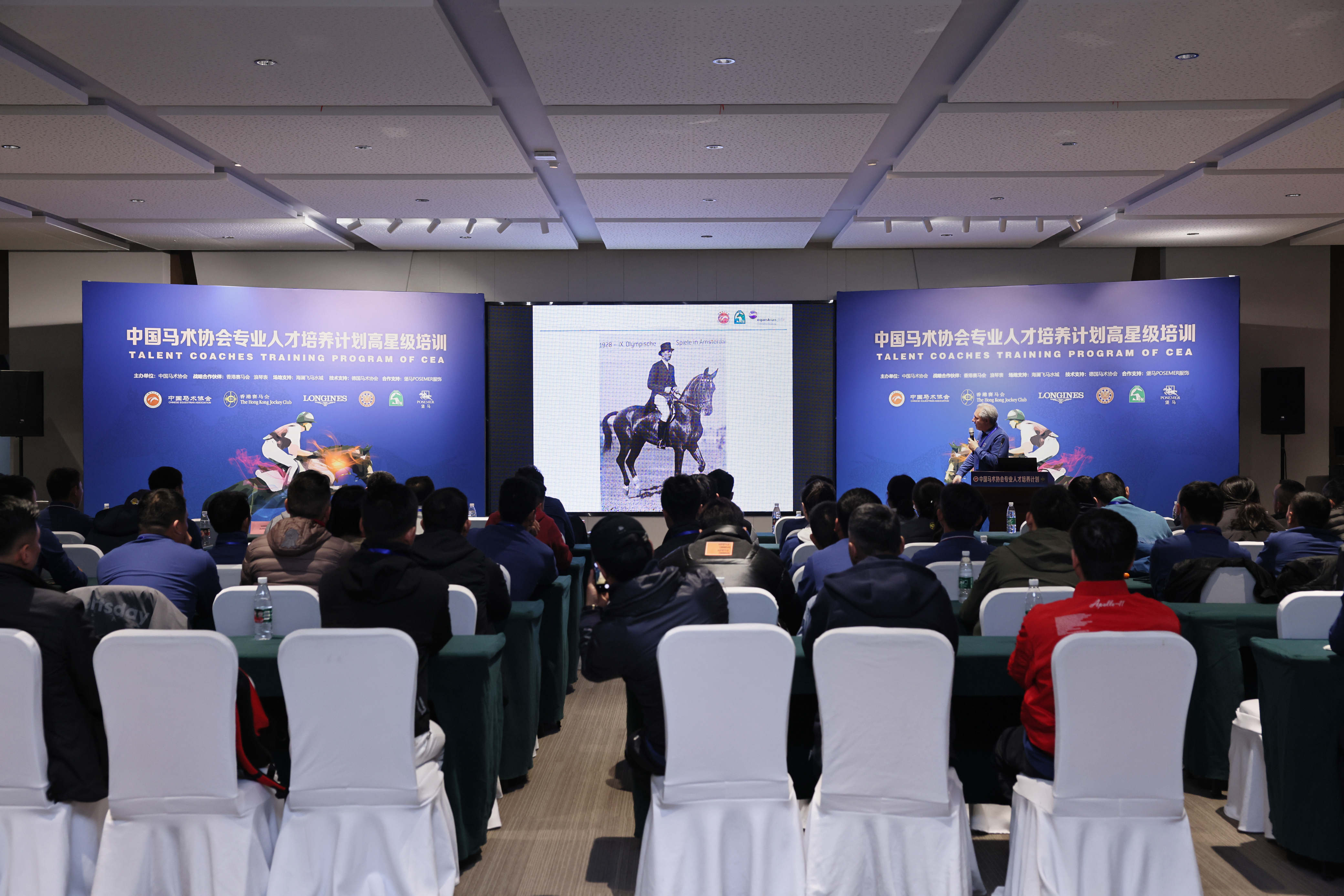 3月20日,由中國馬術(shù)協(xié)會(huì)主辦,香港賽馬會(huì)戰(zhàn)略支持,德國馬術(shù)協(xié)會(huì)、海瀾飛馬水城,堡馬POSEMER服飾提供支持的專業(yè)人才培養(yǎng)計(jì)劃——四星五星級(jí)教練員培訓(xùn)在海瀾國際馬術(shù)俱樂部正式開課。
