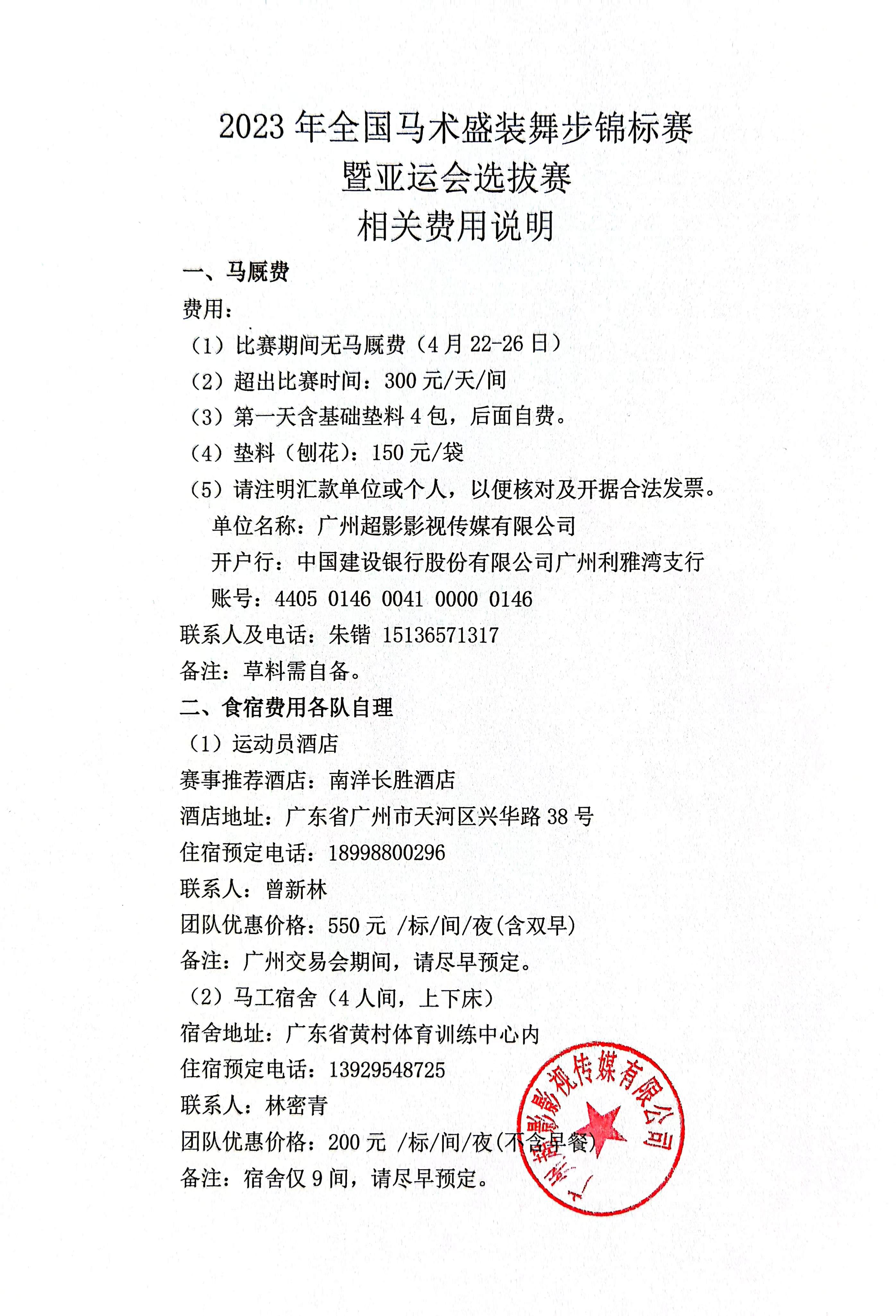 2023年全國馬術(shù)盛裝舞步錦標(biāo)賽暨亞運會選拔賽將于2023年4月24日(周一)-4月26日(周三)在廣東省廣州市黃村體育訓(xùn)練中心舉辦。為使比賽順利進行,現(xiàn)將賽事有關(guān)事宜通知如下: