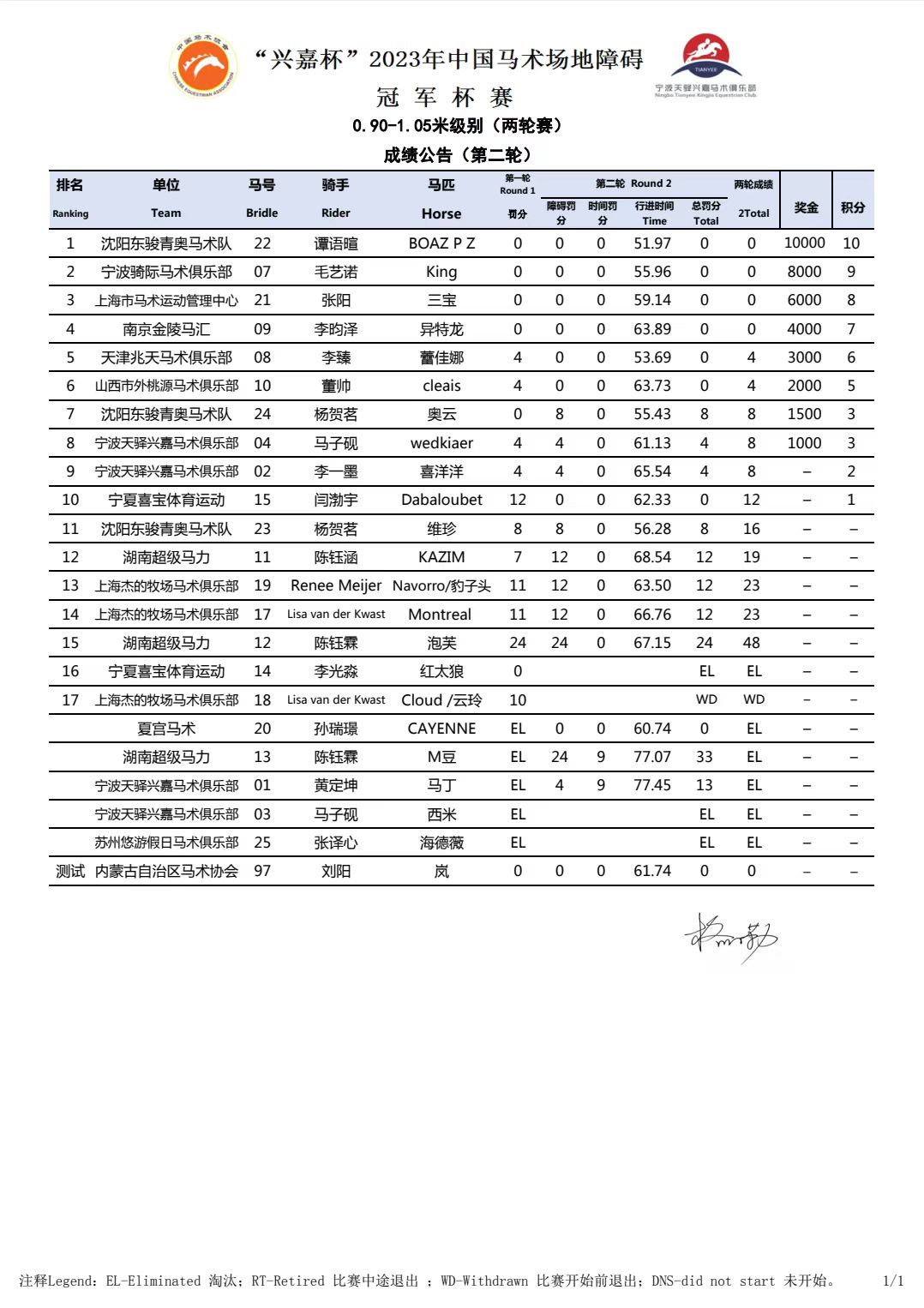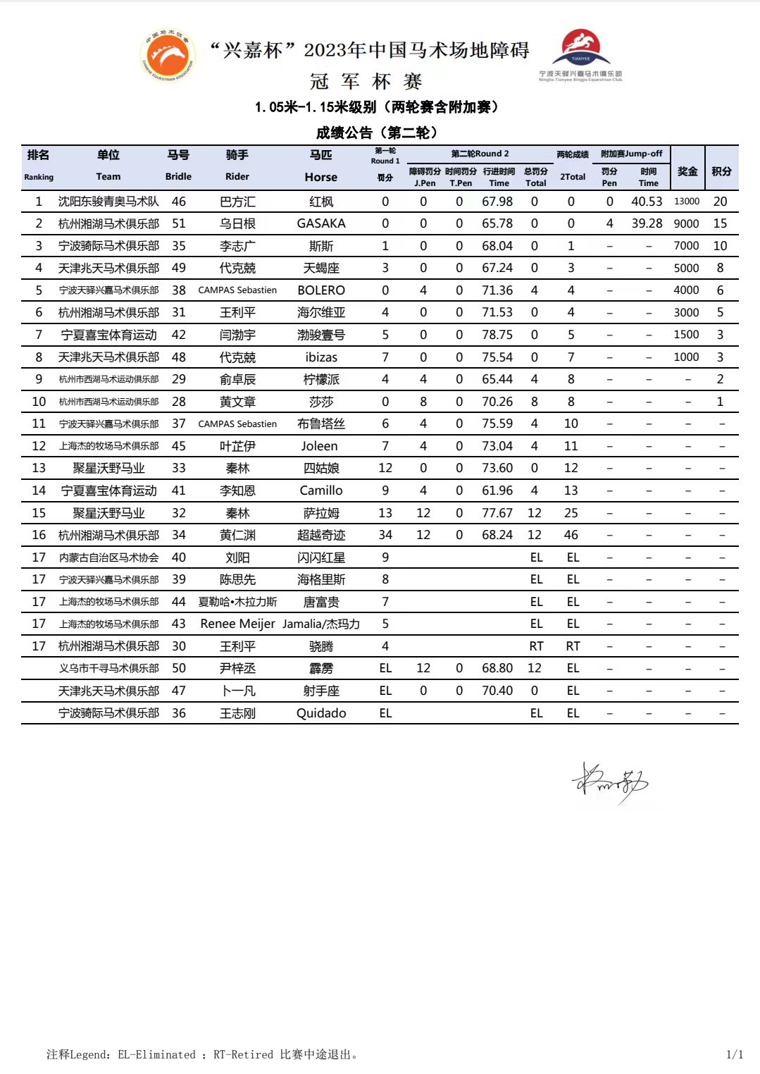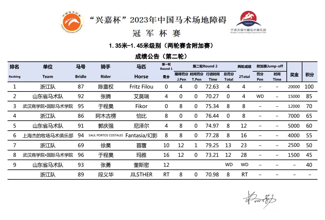 “興嘉杯”2023年中國馬術(shù)場地障礙冠軍杯賽順利完賽