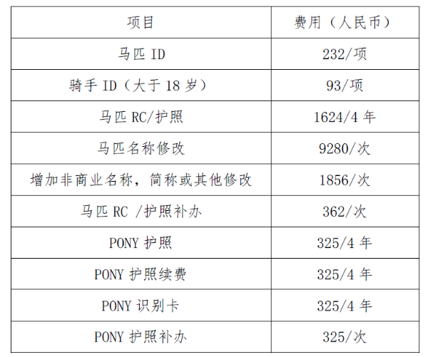 中馬協(xié)關(guān)于代收國際馬聯(lián)注冊費等相關(guān)收費標準更改的通知