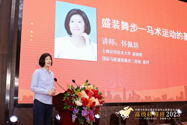 開(kāi)班首日,五位講師以速度賽馬、馬術(shù)等為主題為學(xué)員們講授課題。香港賽馬會(huì)賽馬項(xiàng)目管理辦公室主任鐘嘉銘以香港賽馬會(huì)運(yùn)營(yíng)模式為例,講解香港賽馬會(huì)如何打造世界級(jí)賽事,并提出賽馬發(fā)展愿景2030。中國(guó)農(nóng)業(yè)大學(xué)馬研究中心副主任、教授韓國(guó)才為學(xué)員們講述中國(guó)馬產(chǎn)業(yè)的發(fā)展方向。國(guó)際馬聯(lián)盛裝舞步二星級(jí)裁判、上海應(yīng)用技術(shù)大學(xué)副教授懷佩炘講述盛裝舞步的發(fā)展進(jìn)程及賽事知識(shí)。海瀾集團(tuán)海瀾之家馬術(shù)總經(jīng)理沈厚鋒以海瀾馬術(shù)的前世、今生和未來(lái)為例,分享馬術(shù)俱樂(lè)部的運(yùn)營(yíng)經(jīng)驗(yàn)。國(guó)家馬術(shù)學(xué)院秘書(shū)長(zhǎng)、武漢商學(xué)院國(guó)際馬術(shù)學(xué)院院長(zhǎng)教授李要南介紹賽馬賽事規(guī)則與技術(shù)基礎(chǔ),并簡(jiǎn)短介紹中國(guó)馬術(shù)協(xié)會(huì)人才培養(yǎng)計(jì)劃。