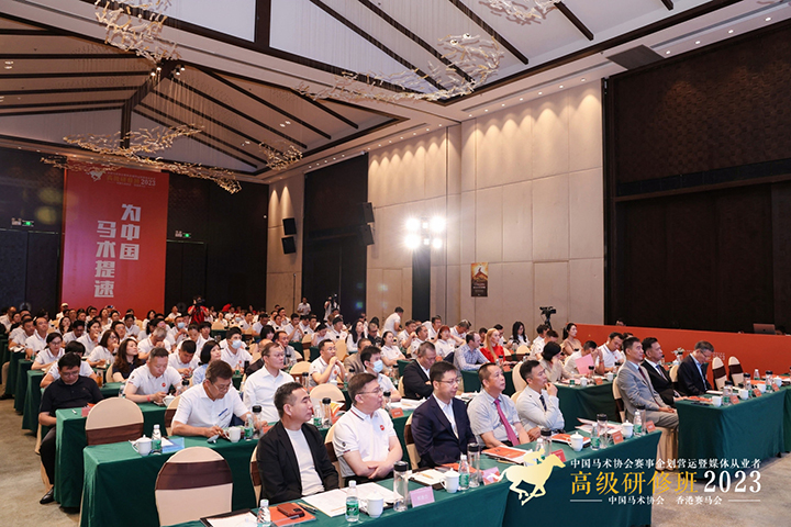 2023年度高級(jí)研修班參會(huì)學(xué)員包括全國(guó)馬術(shù)行業(yè)協(xié)會(huì)代表,賽馬場(chǎng)、馬術(shù)俱樂(lè)部運(yùn)營(yíng)管理者,馬主,高校師生和馬術(shù)運(yùn)動(dòng)愛(ài)好者,以及體育新聞工作者等。研修班邀請(qǐng)來(lái)自澳大利亞、阿聯(lián)酋、日本以及中國(guó)內(nèi)地、中國(guó)香港的高校講師、行業(yè)專(zhuān)家、媒體人員等講師團(tuán)隊(duì)親自來(lái)到廣州授課,在三天的時(shí)間里介紹國(guó)際速度賽馬及馬術(shù)賽事運(yùn)營(yíng)管理、賽事傳播等專(zhuān)業(yè)知識(shí),為現(xiàn)場(chǎng)和線上的參會(huì)人員提供了最專(zhuān)業(yè)的馬術(shù)知識(shí)和最前沿的產(chǎn)業(yè)動(dòng)態(tài)。此外,研修班還組織了去香港賽馬會(huì)從化馬場(chǎng)進(jìn)行現(xiàn)場(chǎng)觀摩,加深認(rèn)識(shí),增加交流。在主題研討環(huán)節(jié),國(guó)際國(guó)內(nèi)專(zhuān)業(yè)學(xué)者、媒體朋友和行業(yè)同仁們共聚一堂,共話?cǎi)R術(shù)發(fā)展,為馬術(shù)發(fā)展凝聚了多元智慧。