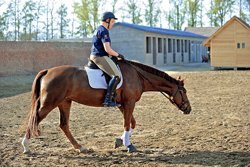 當(dāng)馬保持了正直,在它的行進(jìn)路線中,每道地桿的間距應(yīng)該是相同的。如圖3所示,如果馬表現(xiàn)出猶豫,這是馬在試探它自己能否逃避或者偷懶,那么你就要用腿告訴它向前。