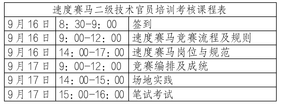 中國馬術(shù)協(xié)會(huì)關(guān)于在武漢舉辦速度賽馬二級(jí)技術(shù)官員培訓(xùn)考核的通知
