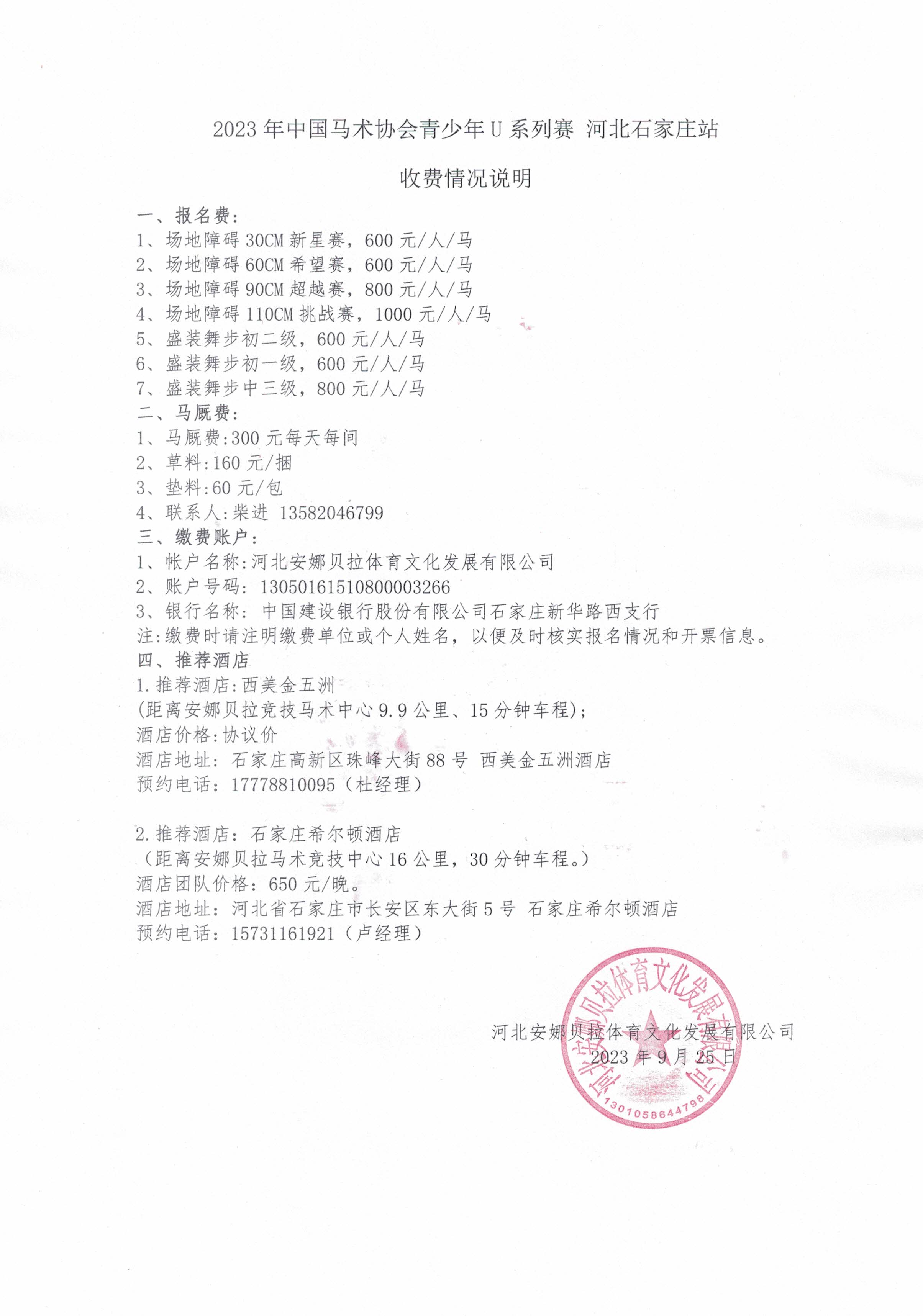 2023年中國馬術協(xié)會青少年U系列賽(河北石家莊站)將于2023年10月14日至10月15日在河北石家莊安娜貝拉競技馬術中心舉辦。為使比賽順利進行,現(xiàn)將賽事有關事宜通知如下: