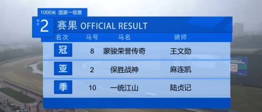 第一場“鄂港杯”2歲在中國出生純血馬1200米