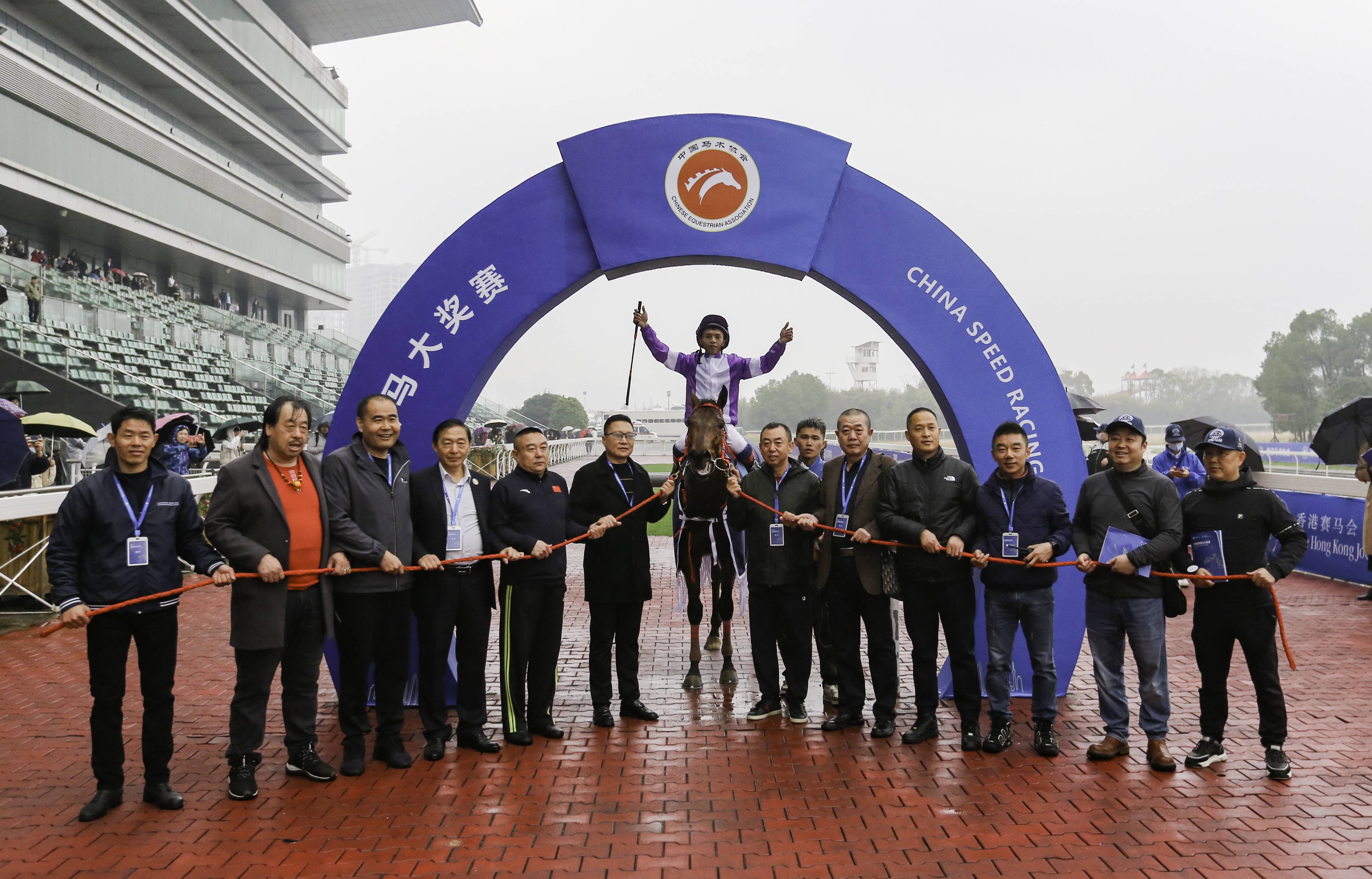 第五場“同步杯”4歲中國出生純血馬2000米賽事,來馬主張建道旗下名駒“和力雄鷹”拔得頭籌。