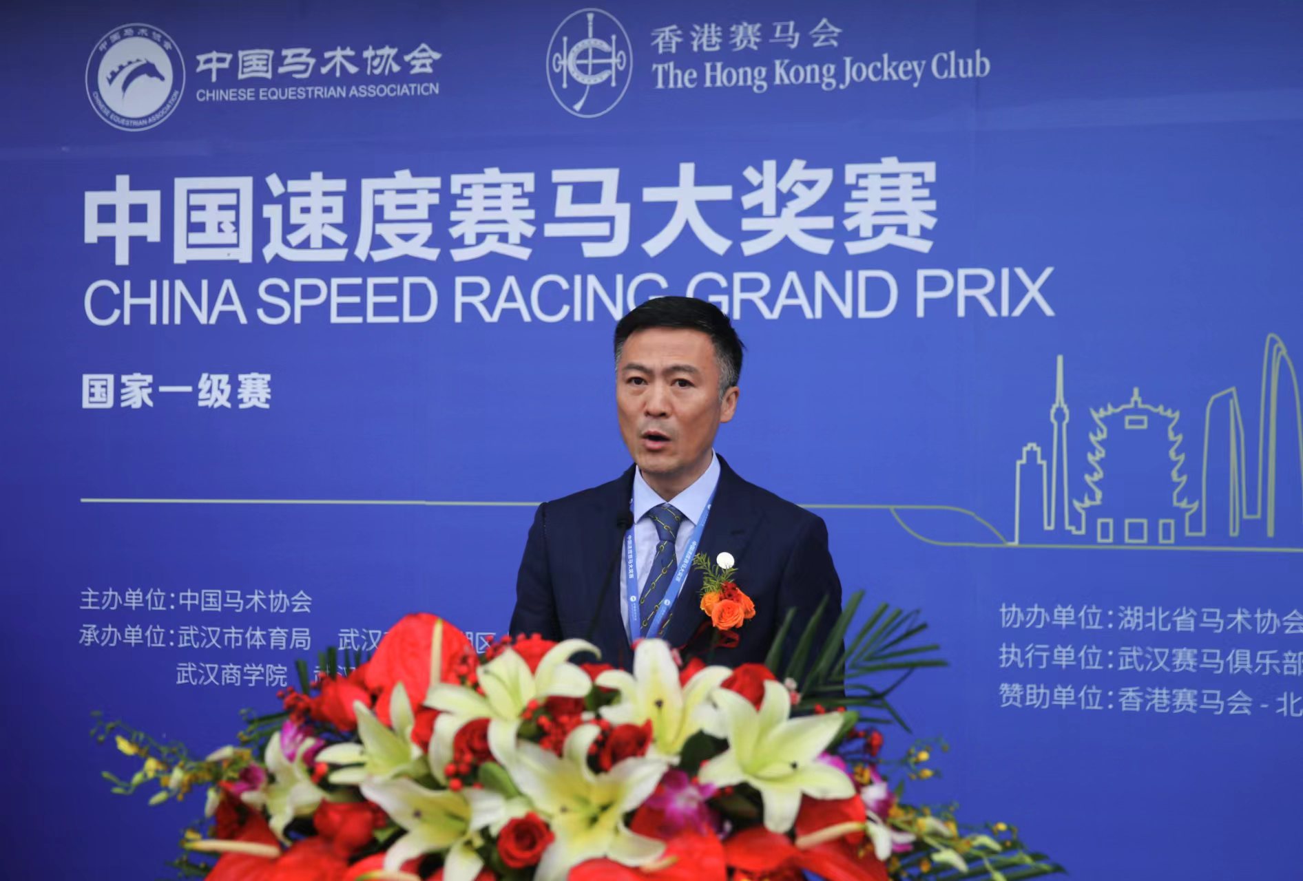 蒞臨本次賽事現(xiàn)場的主要領(lǐng)導(dǎo)和嘉賓有國家體育總局小球運(yùn)動(dòng)管理中心主任賀鳳翔,中國馬術(shù)協(xié)會(huì)秘書長鐘國偉、副秘書長、賽馬委員會(huì)常務(wù)副主任陳九慶,湖北省體育局局長水兵,湖北省港澳辦主任章笑梅,武漢體育學(xué)院黨委書記陳繼平,武漢商學(xué)院院長彭瑜,武漢市人民政府副秘書長張明武,武漢市港澳辦主任喻峰,武漢市體育局局長雷利軍,湖北省體育局二級(jí)巡視員、競體處處長陳文勝,東西湖區(qū)人民政府區(qū)長周明,武漢市體育局副局長顏璠,東西湖區(qū)人民政府副區(qū)長齊曼,武漢市人民政府辦公廳綜合三處處長聶星,東方神馬集團(tuán)主席胡越高,香港賽馬會(huì)賽馬項(xiàng)目管理辦公室主任鐘嘉銘,香港賽馬會(huì)北京代表處首席代表陳建平,以及各參賽俱樂部馬主、練馬師、騎師等行業(yè)代表和媒體等。