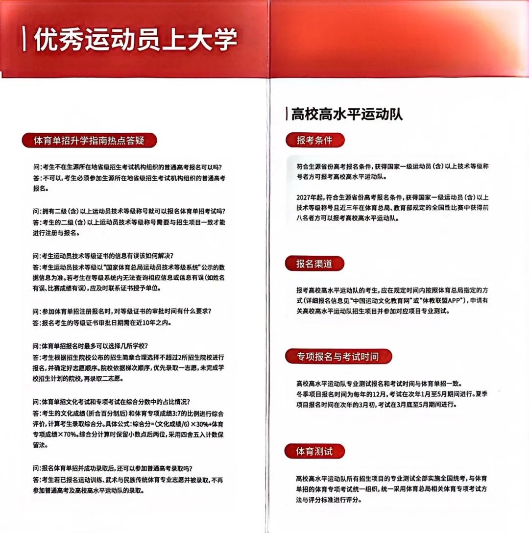 優(yōu)秀運動員上大學(xué)宣傳折頁:
