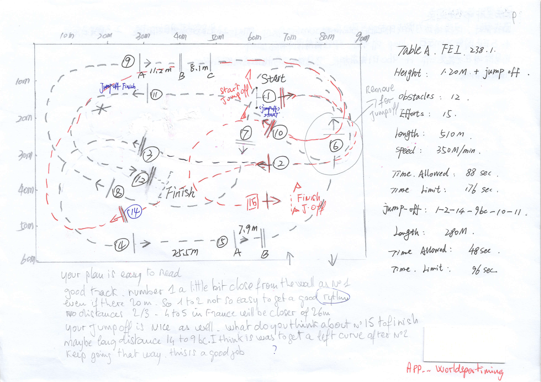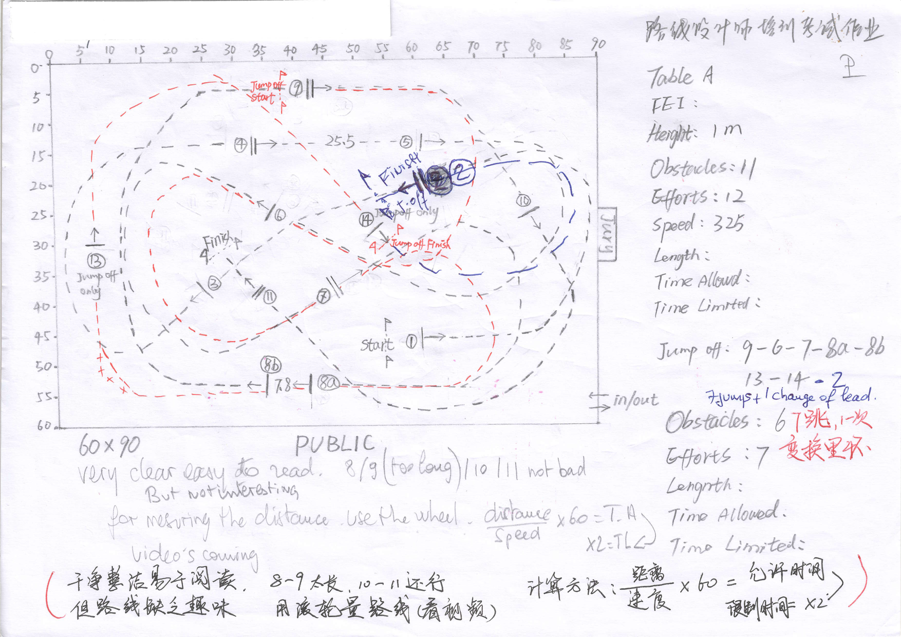 講師Olivier從騎手、教練、馬匹的視角解讀路線設(shè)計(jì)的思路,用耐心細(xì)致的講解,傳授路線設(shè)計(jì)理念。他對每一位學(xué)員的路線設(shè)計(jì)作業(yè)認(rèn)真修改,給出修改的建議和評語,盡心盡力幫助每一位學(xué)員進(jìn)步,這種精神和態(tài)度得到學(xué)員們的肯定和欽佩。