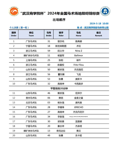 5月18日,“武漢商學(xué)院杯”2024年全國馬術(shù)場地障礙錦標(biāo)賽在武漢商學(xué)院馭馬體育公園進(jìn)入最終決戰(zhàn)。在前天的比賽中,個人排名前25的人馬組合才有機(jī)會角逐今天的賽事。經(jīng)過騎手的慎重考慮,共有20對人馬組合最終決定迎難而上。