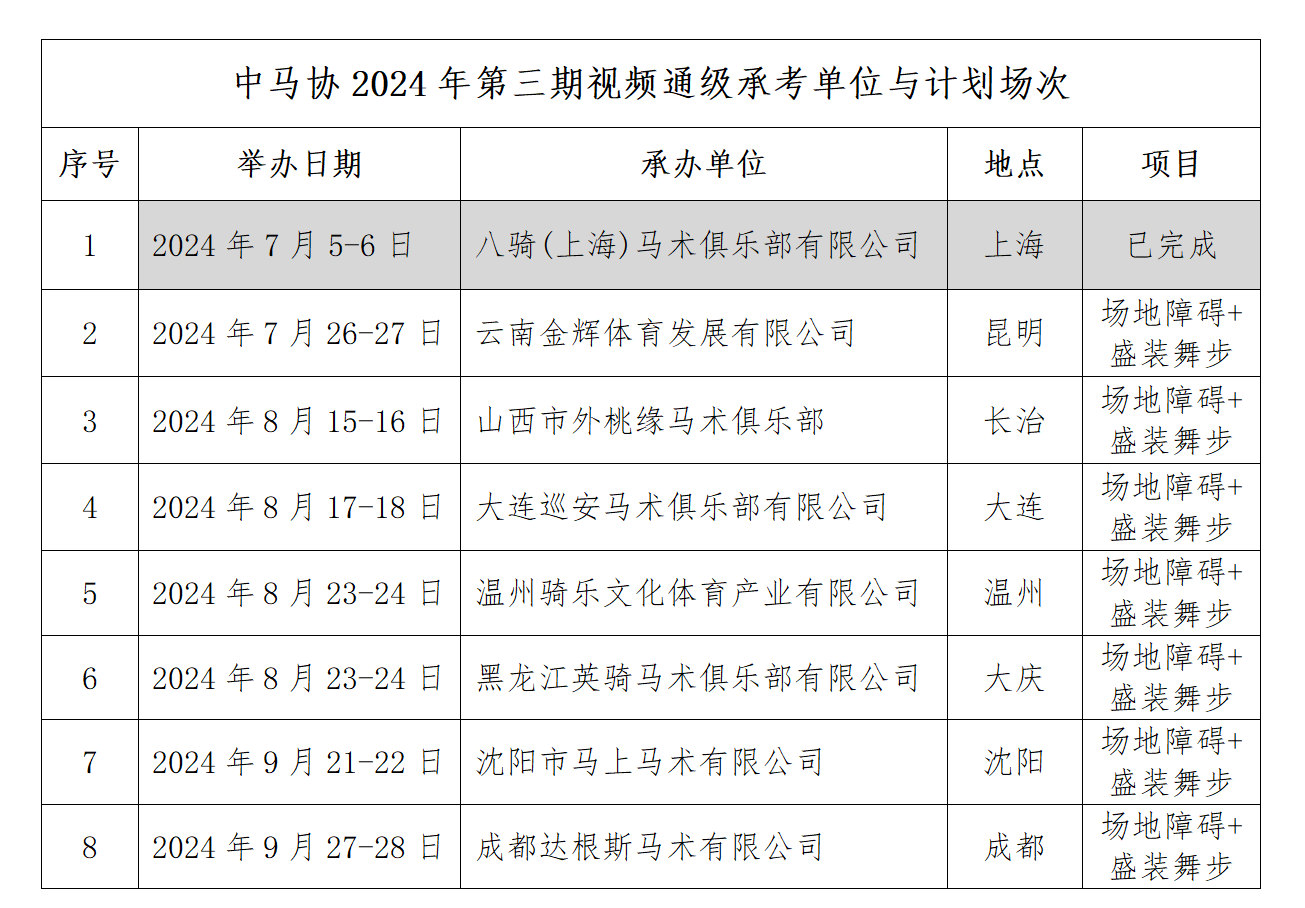 中馬協(xié)關(guān)于公布第三期視頻通級(jí)考核計(jì)劃的通知