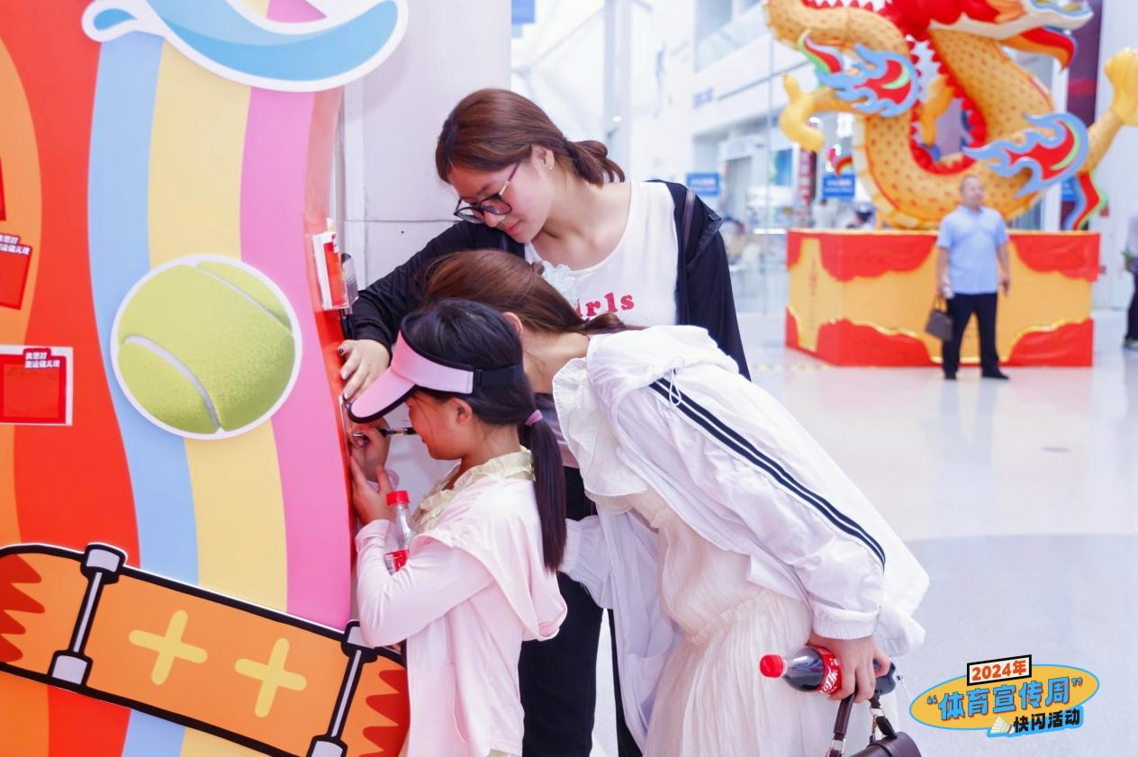 現(xiàn)場(chǎng)互動(dòng)環(huán)節(jié)精彩紛呈,設(shè)置了豐富多樣的內(nèi)容。“打卡”區(qū)精心設(shè)計(jì),使用插片式場(chǎng)景搭建和全民健身、巴黎奧運(yùn)會(huì)相關(guān)設(shè)計(jì)元素,打造了適合青年群體的拍照體驗(yàn)區(qū)。AR/VR 體驗(yàn)區(qū)提供了全民健身主題的設(shè)備供民眾免費(fèi)體驗(yàn),通過跑、跳等趣味運(yùn)動(dòng)形式回答體育宣傳周相關(guān)問題,進(jìn)行互動(dòng)。“為巴黎奧運(yùn)會(huì)中國(guó)體育代表團(tuán)加油”區(qū)域中,現(xiàn)場(chǎng)游客可寫下加油、祝福留言,積極為中國(guó)健兒加油。此外,在“水立方”的支持下,展覽展示區(qū)展出珍貴北京冬奧會(huì)相關(guān)展品,與“快閃”活動(dòng)融為一體,營(yíng)造出濃厚的活動(dòng)氛圍。除此之外,現(xiàn)場(chǎng)還設(shè)立了“金牌時(shí)刻”區(qū)域,時(shí)刻展示本次巴黎奧運(yùn)會(huì)中國(guó)體育代表團(tuán)奪金瞬間。