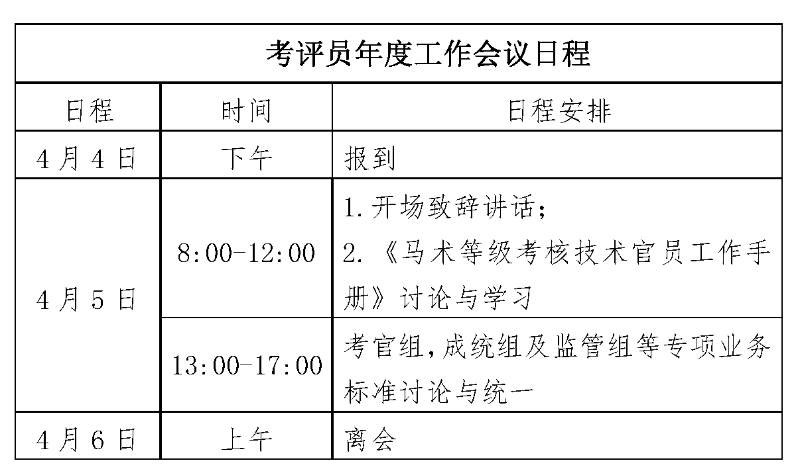 中馬協(xié)關(guān)于召開馬術(shù)考級(jí)項(xiàng)目考評(píng)員年度工作會(huì)議的通知