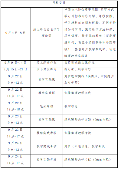 (三)線下輔導(dǎo)和實(shí)踐考核:2025年9月22日-24日,在天津市兆天馬術(shù)俱樂(lè)部進(jìn)行線下集中輔導(dǎo)與實(shí)踐考核。