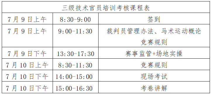根據(jù)馬術(shù)專業(yè)人才培養(yǎng)計劃,我協(xié)會將于2021年7月9日-10日在海瀾國際馬術(shù)俱樂部舉辦三級技術(shù)官員培訓(xùn)考核活動,合格者授予中國馬術(shù)協(xié)會相應(yīng)等級技術(shù)官員證?,F(xiàn)就本次培訓(xùn)考核相關(guān)事宜通知如下:
