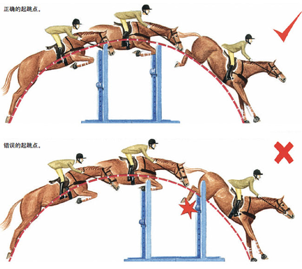 騎手知道跳梯形障礙時必須更有動力,因此會更堅決地向前,從而讓馬匹更努力地去跳。盡管跳梯形障礙時需要更多的動力,但一定不要在障礙前增大馬匹的步伐。保持腿有力的輔助,但是在起跳前的路線必須保持同樣的節(jié)奏。如果騎手讓馬匹步伐更長或更快,這樣會很危險,馬匹的重量就會落在前肩上,丟掉平衡。一旦馬匹的重量落在馬匹的前肩就很有可能打桿。