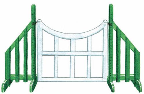 真正的窄障礙桿是白色的,底座是一雙腳一樣支撐的障礙架,在全程中它是很窄的障礙,這種障礙還可以做成磚墻、門(mén)狀或木板條形式。