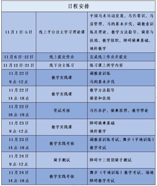 (三)線下輔導和實踐考核:2021年11月22日-24日,在無錫陽山夢想馬術學府進行線下集中輔導與實踐考核。