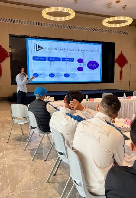 協(xié)會(huì)誠邀國際馬聯(lián)星級裁判懷佩忻老師為盛裝舞步和三項(xiàng)賽隊(duì)員準(zhǔn)備了專業(yè)豐富的干貨技能。解析盛裝舞步的打分標(biāo)準(zhǔn),讓隊(duì)員教練員從裁判角度出發(fā),鎖定賽場實(shí)戰(zhàn)的成績突破;以實(shí)際比賽視頻為例,細(xì)致入微地講解重點(diǎn)動(dòng)作要點(diǎn)和評分標(biāo)準(zhǔn);針對巴黎奧運(yùn)會(huì)資格分配、MER要求等進(jìn)行規(guī)則解讀,并以東京奧運(yùn)會(huì)馬術(shù)賽事監(jiān)管經(jīng)歷,分享奧運(yùn)會(huì)級別賽事參賽的注意事項(xiàng)和作為運(yùn)動(dòng)員參賽的重點(diǎn)難點(diǎn)。協(xié)會(huì)搭建的技術(shù)、體能等復(fù)合專家團(tuán)隊(duì)的專業(yè)保障將為新周期奧運(yùn)備戰(zhàn)助力護(hù)航,筑牢隊(duì)員以“贏”為目標(biāo)磨練技能。