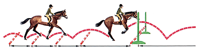 這種訓練對節(jié)奏和平衡是個很好的測試。騎手必須確保馬從快步桿的中央到達障礙,并且馬是正直的。這時沒有交叉桿來保持馬在障礙欄的中間跳越,所以要依靠騎手。馬必須保持一個好的節(jié)奏、平衡和推進力,在整個訓練中都必須保持這樣。馬不能失去推進力,但同時騎手也不能催促馬,馬應不慌不忙平衡地跳越,不是用力猛沖跳越。