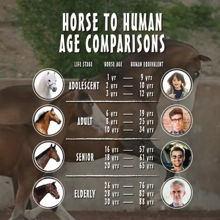 而當(dāng)馬匹踏入五歲后,成長就開始逐漸放緩,每大一歲就等如人類年長了兩年半。因此名駒“歡樂小子”早前以十歲之齡贏馬,換算人類的年紀(jì)約為三十五歲。不過值得一提的是,以上資料只是大約的計(jì)算,實(shí)際影響馬匹成長的因素更包括健康、營養(yǎng)吸收、運(yùn)動量等。