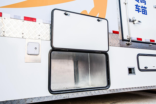 車輛用的是江淮牌-廂式運(yùn)輸車底盤,從側(cè)面看,車輛與普通的豪華A型房車沒有什么太大的區(qū)別。車輛前部為隨車人員的生活區(qū),后部則為安放馬匹的地方。