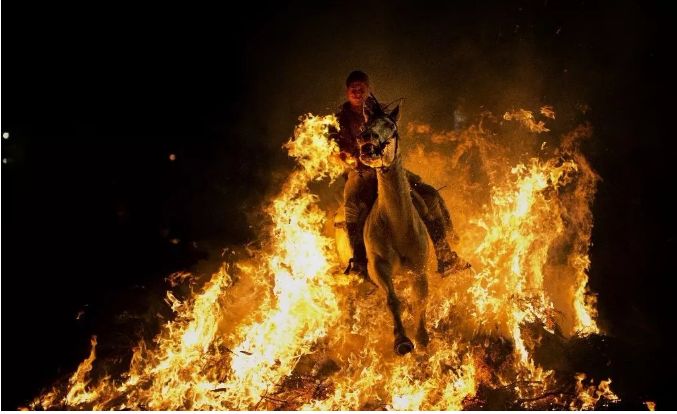 每年1月16日晚上,勇士們會騎上駿馬從燃起的篝火上穿過,完成令人驚嘆的節(jié)日慶祝方式。西班牙圣安東尼節(jié)已有500多年的歷史。人們把毛驢、騾子等聚在篝火旁邊,認為這樣做可以讓動物凈化驅邪。因當?shù)氐淖诮绦叛?,此?jié)日傳統(tǒng)一直保留至今。現(xiàn)在,馬代替了驢,慶祝方式也從圍著篝火跑演變成跳躍篝火。