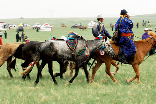 蒙古人在現(xiàn)代生活中依然保持著一顆勇于迎接挑戰(zhàn)的心。蒙古人社會(huì)文化的重要一部分就是賽馬,大約有一半的牧民家里都養(yǎng)著一兩匹蒙古賽馬。那達(dá)慕是蒙古人的傳統(tǒng)賽馬盛會(huì),從當(dāng)?shù)氐貐^(qū)級別的賽事開始一直到7月份的國家級總決賽,每年夏天都會(huì)舉辦4-5次那達(dá)慕大會(huì)。騎手的年齡大部分都在5-13歲之間,這也說明,在蒙古騎馬并不算是一項(xiàng)傳統(tǒng)意義上的運(yùn)動(dòng),而是理所當(dāng)然的事情。大多數(shù)牧民的孩子長到5歲的時(shí)候差不多就已經(jīng)學(xué)會(huì)騎馬了。