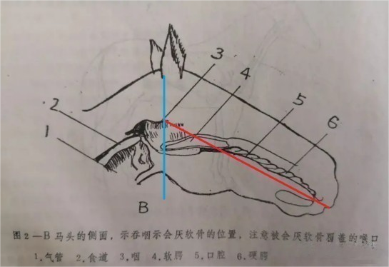(3)到達(dá)第一處標(biāo)示時,觀察馬是否有吞咽動作。有,則成功進入食管;無,則重新進行上述操作。