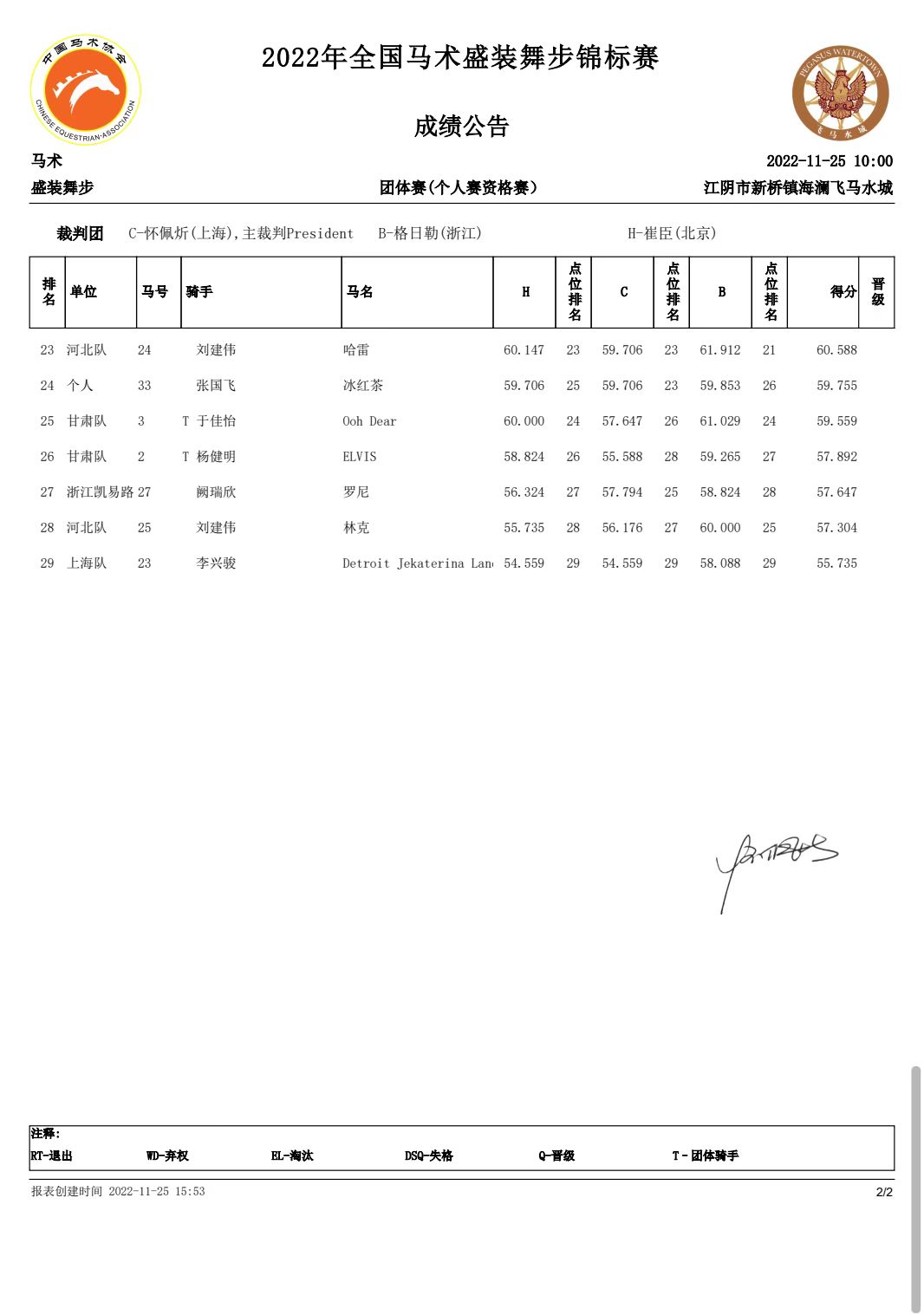 2022年全國馬術盛裝舞步錦標賽團體賽及個人資格賽名次揭曉