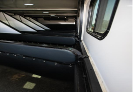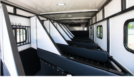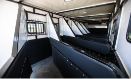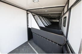 箱體內(nèi),凡是馬匹接觸面均有軟包設(shè)計(jì),貼心呵護(hù)馬匹安全。在每個(gè)馬頭上部加裝繩索和馬料固定點(diǎn),前板處增加小門方便進(jìn)出。