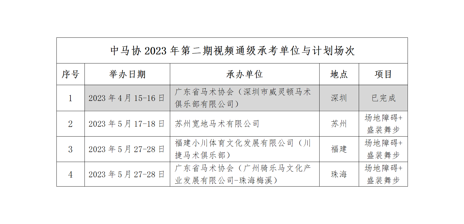 中馬協(xié)關(guān)于公布第二期視頻通級考核計劃的通知