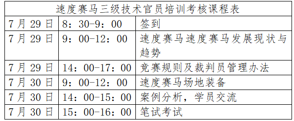 根據馬術專業(yè)人才培養(yǎng)計劃,我協(xié)會將于2023年7月29日-30日在廣東省馬術協(xié)會舉辦速度賽馬三級技術官員培訓考核活動,合格者授予中國馬術協(xié)會相應等級技術官員證?,F就本次培訓考核相關事宜通知如下: