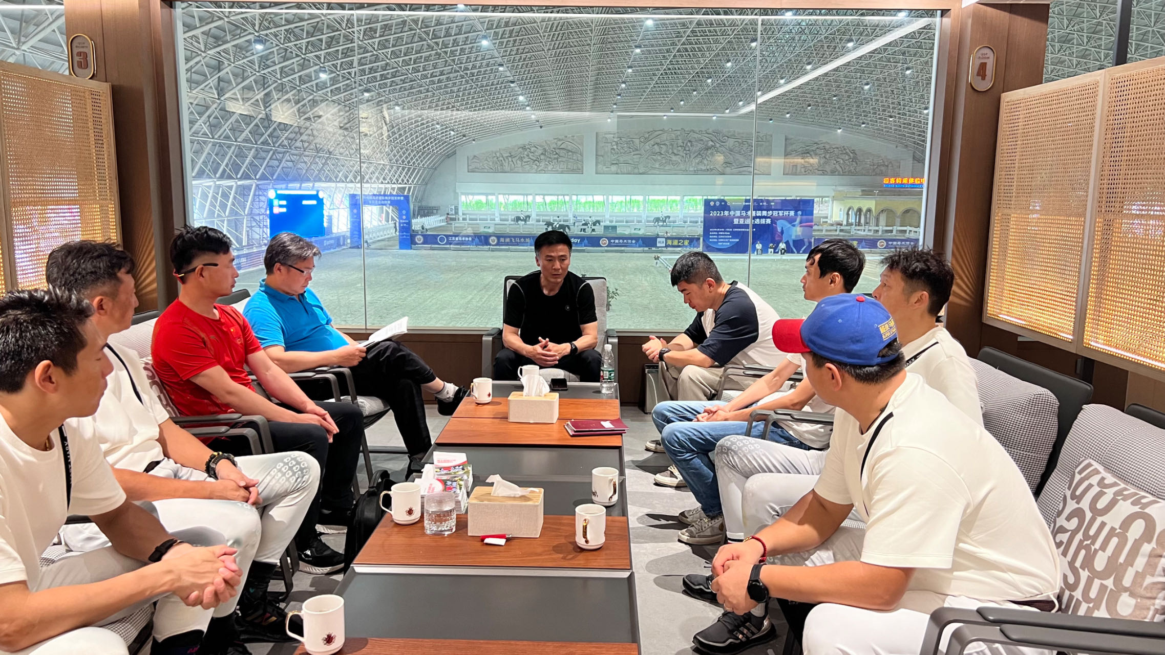 選拔賽結(jié)束后,中國(guó)馬術(shù)協(xié)會(huì)第一時(shí)間在賽場(chǎng)召開了中國(guó)馬術(shù)盛裝舞步隊(duì)成立及反興奮劑會(huì)議,中國(guó)馬術(shù)協(xié)會(huì)秘書長(zhǎng)鐘國(guó)偉,副秘書長(zhǎng)兼反興奮劑辦公室主任胡彪,國(guó)內(nèi)入選盛裝舞步隊(duì)運(yùn)動(dòng)員,在江蘇訓(xùn)練的三項(xiàng)賽隊(duì)運(yùn)動(dòng)員包英鳳及國(guó)家馬術(shù)三項(xiàng)賽團(tuán)隊(duì)輔助成員共同參加了會(huì)議。